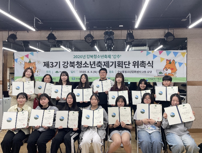 [뉴스앤톡] 서울 강북구는 지난 4일 우이동 청소년문화센터에서 ‘2026년 제3기 강북청소년축제기획단’ 위촉식을 개최했다고 밝혔다.