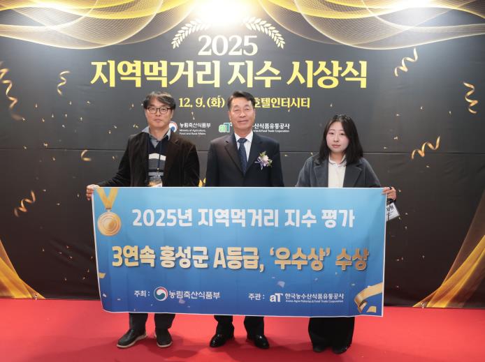 [뉴스앤톡] 충남 홍성군은 지난 9일 농림축산식품부가 주최하고, 한국농수산식품유통공사에서 주관하는 ‘2025년 지역먹거리 지수 평가’에서 3년 연속 A등급을 달성, “우수상”(한국농수산식품유통공사 사장상)을 수상하며 지역먹거리 정책 우수 지자체로서의 위상을 굳건히 했다고 밝혔다.