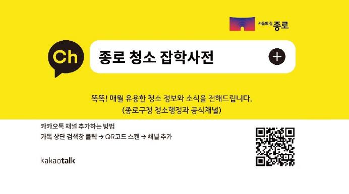 [뉴스앤톡] 종로구는 2026년 1월부터 카카오톡 채널을 통해 청소 정보를 쉽고 빠르게 받아볼 수 있는 '종로 청소 잡학사전' 운영을 시작한다.