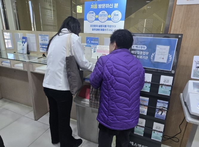 | ▲ 동행 매니저가 치매 검진을 위해 어르신과 함께 병원을 방문하여 진료 접수 절차를 돕고 있다. |