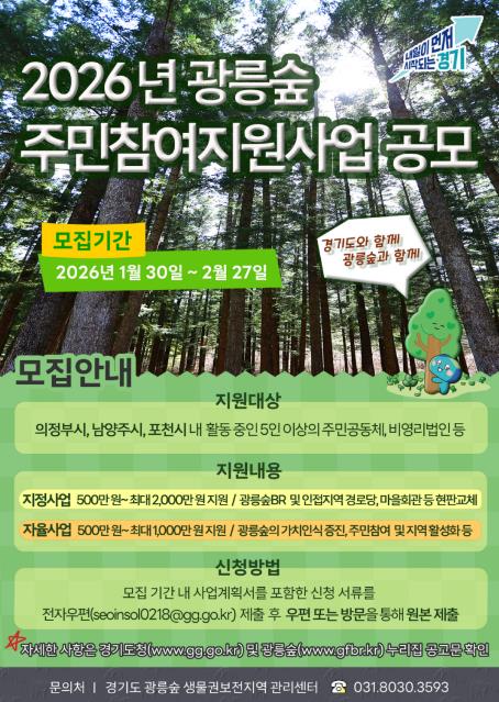 [뉴스앤톡] 경기도가 광릉숲 생물권보전지역 활성화를 위해 2026년 광릉숲 주민참여지원사업 참여자를 모집한다.