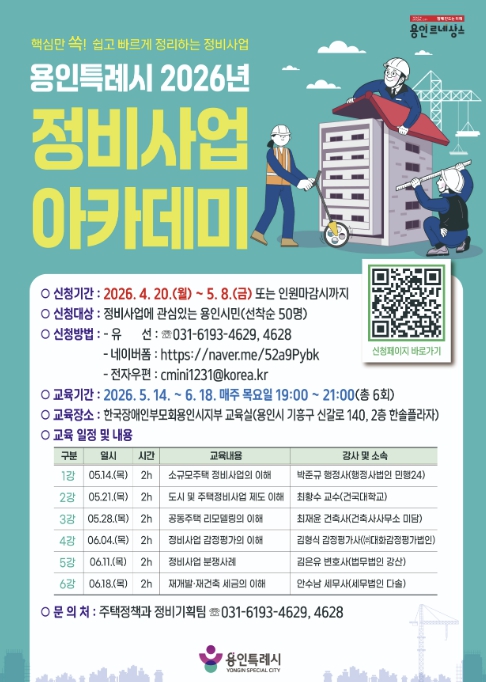 [뉴스앤톡] 용인특례시는 4월 20일부터 5월 8일까지 ‘2026년 정비사업 아카데미’ 수강생을 모집한다.