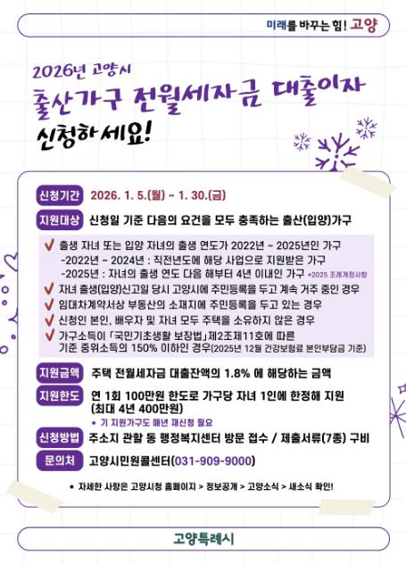 [뉴스앤톡] 고양특례시가 ‘아이 키우기 좋은 도시’를 목표로 올해 출산·양육 지원을 더욱 강화한다.