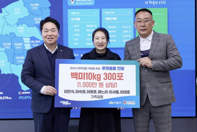 오세현 아산시장은 “나눔을 실천해 주신 이민식 가족에 깊이 감사드린다”며 “이러한 가족 단위의 후원이 지역사회 전반에 나눔 문화를 확산시키는 소중한 본보기가 되고 있다”고 말했다.