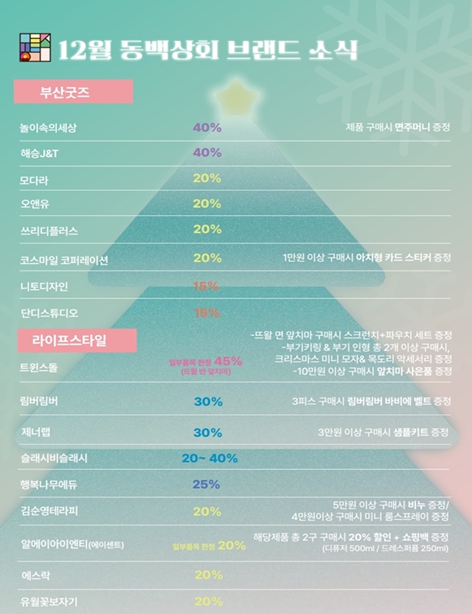 [뉴스앤톡] 부산시와 부산경제진흥원은 부산 우수 제품 쇼핑 숍 '동백상회'에서 12월 31일까지 송년 감사 특별 할인 행사를 개최한다고 밝혔다.