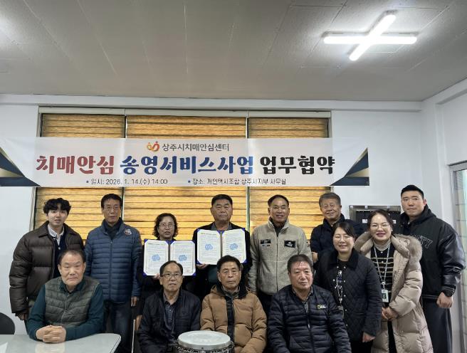 [뉴스앤톡] 상주시치매안심센터는 1월 14일 경북개인택시운송사업조합 상주시지부와 ‘치매안심 송영서비스’ 운영을 위한 업무협약을 체결하고, 치매어르신의 안전한 이동 지원을 위한 협력체계를 구축했다.