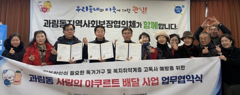 [뉴스앤톡] 시흥시 과림동 지역사회보장협의체는 지난 1월 19일 ㈜한국야쿠르트 역곡점과 복지 취약계층 안부 확인을 위한 ‘사랑의 요구르트 배달’ 사업 추진 업무협약을 체결했다.