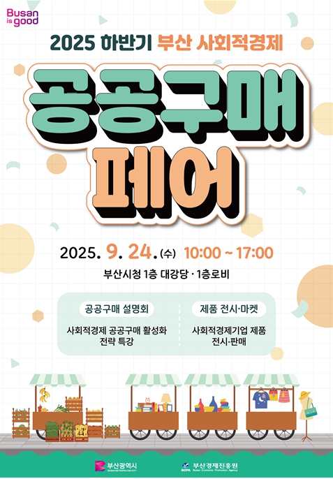 [뉴스앤톡] 부산시는 내일(24일) 오전 10시 시청 1층 대강당과 로비에서 '2025 하반기 부산 사회적경제 공공구매 페어'를 개최한다고 밝혔다.