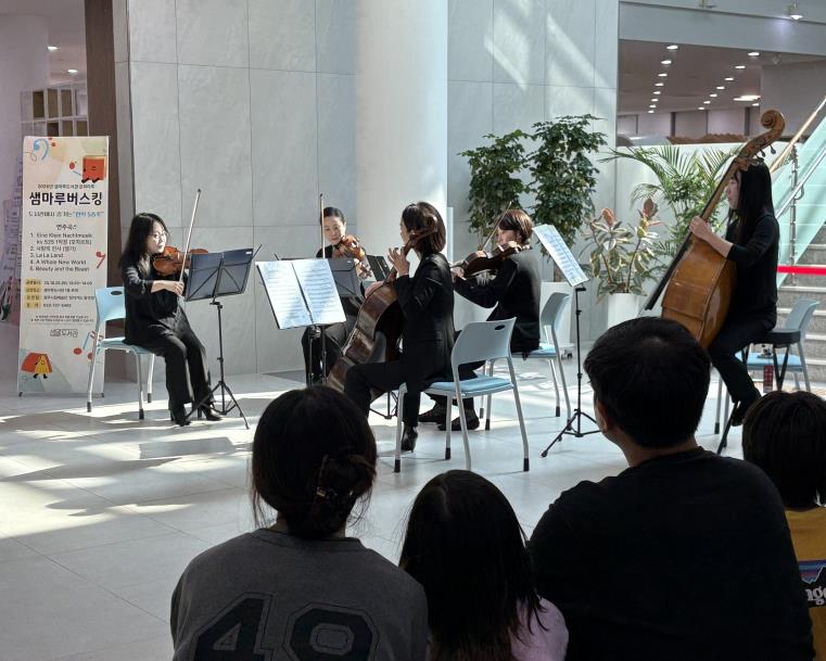 [뉴스앤톡] 지난 25일 샘마루도서관에서 열린 ‘샘마루버스킹–현악 5중주’ 공연이 시민들의 뜨거운 관심 속 마무리됐다.