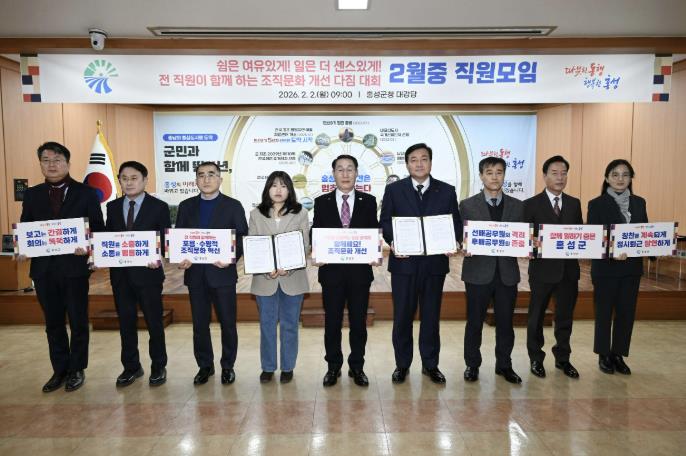 [뉴스앤톡] 홍성군은 지난 2일 직원모임에서 홍성군수와 간부공무원, 직원 100여 명이 참석한 가운데 전 직원 대상 조직문화 개선 다짐대회를 열었다고 밝혔다.