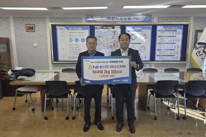 [뉴스앤톡] NH농협은행 아산시지부는 지난 2일 아산시청을 방문해 아산시에 설 명절을 맞아 취약계층을 위한 떡국떡 2kg 100박스를 후원하며 지역사회에 따뜻한 온정을 전했다.