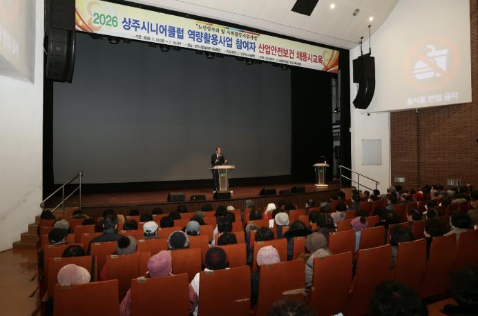 [뉴스앤톡] 상주시니어클럽은 2026년 노인일자리 및 사회활동지원사업‘노인역량활용사업단’참여자를 대상으로 1월 13일부터 14일까지 이틀간 상주문화회관에서 산업안전보건교육을 실시했다.