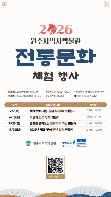 [뉴스앤톡] 원주시역사박물관은 새해를 맞아 ‘2026 전통문화 체험 행사’를 운영한다.