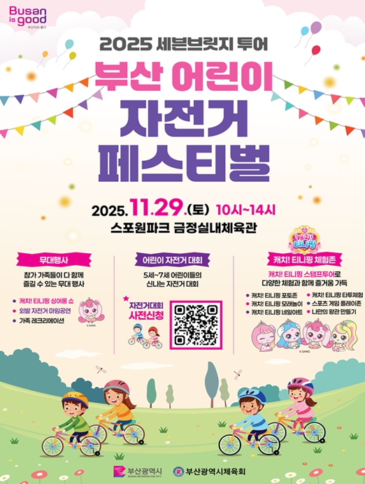[뉴스앤톡] 부산시는 오는 11월 29일 오전 11시 스포원파크 금정실내체육관에서 2025 세븐브릿지 투어 연계 '부산 어린이 자전거 페스티벌'을 개최한다고 밝혔다.