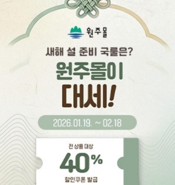 [뉴스앤톡] 원주시 공식 인터넷 쇼핑몰 ‘원주몰’이 설 명절을 맞아 다음 달 18일까지 ‘2026 원주몰 설맞이 기획전’을 진행한다.