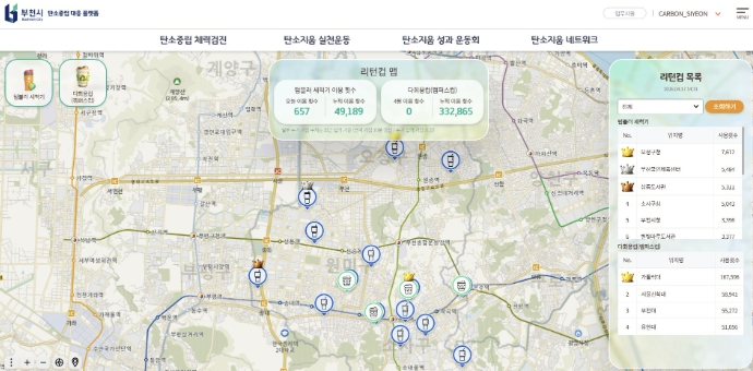 | ▲ 부천시 탄소중립 대응 플랫폼에서 제공 예정인 리턴컵맵 화면 |