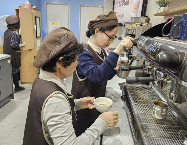 | ▲ 성남시 노인일자리 공동체사업단 분야 카페 운영 참여 어르신들 |