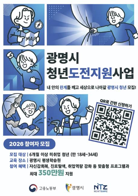 [뉴스앤톡] 광명시가 구직에 어려움을 겪는 청년들의 사회 진출을 돕기 위해 오는 22일까지 ‘2026년 청년도전지원사업’ 참여자 78명을 모집한다.