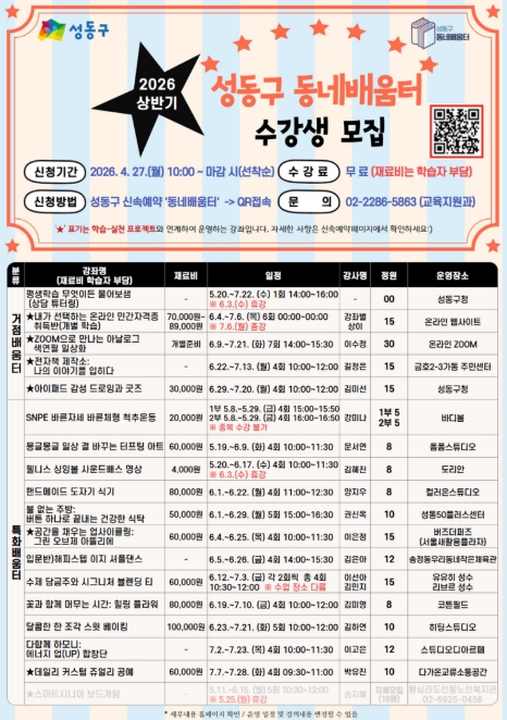 | ▲ 2026년 상반기 동네배움터 프로그램 안내문 |