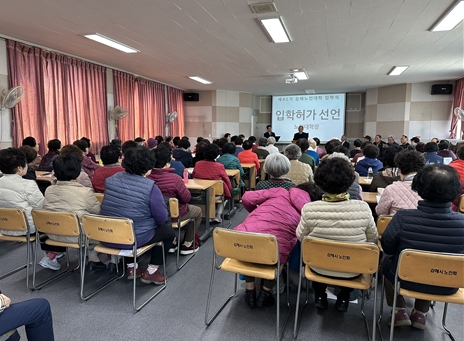 | ▲ 진영·김해 노인대학 입학식 개회 |