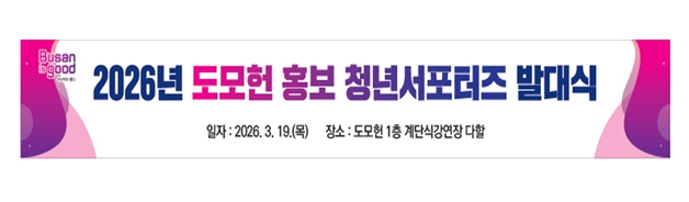 [뉴스앤톡] 부산시는 오늘(19일) 오후 3시 도모헌에서 '2026년 도모헌 홍보 청년서포터즈'의 발대식을 개최하고, 본격적인 활동을 시작한다고 밝혔다.