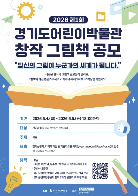 공모 접수는 오는 5월 4일부터 6월 5일까지 약 한 달간 진행되며, 자세한 공고 내용은 4월 20일부터 경기도어린이박물관 및 경기문화재단 누리집(홈페이지)을 통해 확인할 수 있다. 그림책 작가를 꿈꾸거나 새로운 도전을 원하는 창작자라면 누구나 참여할 수 있다.