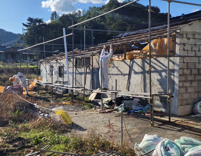 | ▲ 지난해 슬레이트 처리 지원 사업으로 슬레이트를 철거하고 있는 모습 |