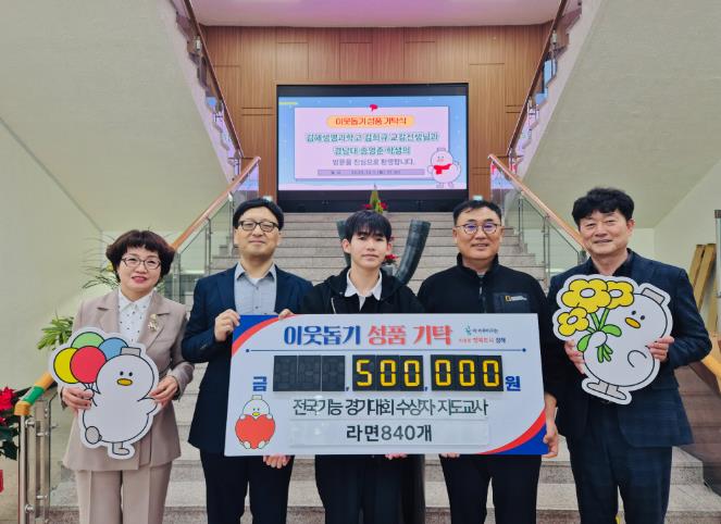 [뉴스앤톡] 김해시는 2일 전국기능경기대회 수상자와 지도교사가 수상을 기념해 라면 840개(50만원 상당)를 기탁했다고 밝혔다.