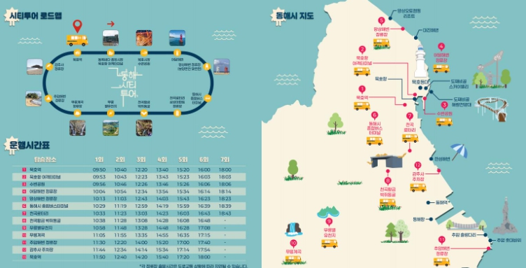 동해시티투어버스는 묵호역을 출발해 묵호역으로 돌아오는 순환형 노선으로 운영된다.