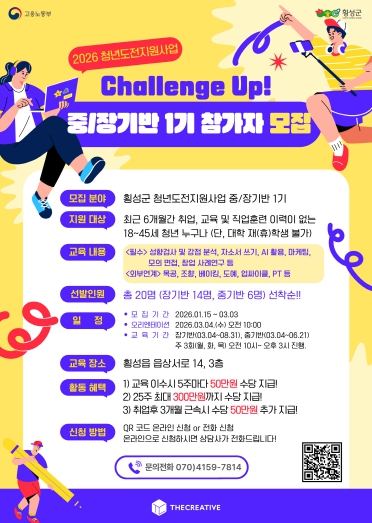 [뉴스앤톡] 횡성군은 지역 청년들의 사회 진출과 성장을 지원하기 위해 ‘2026 청년도전지원사업’ 참여자를 모집한다고 밝혔다.