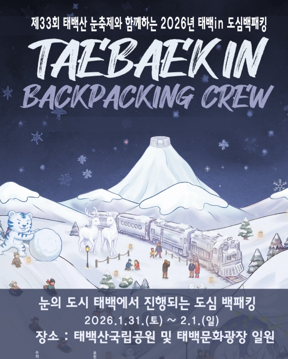 [뉴스앤톡] 태백시는 오는 1월 31일부터 2월 1일까지 이틀간, 황지연못 내 태백문화광장 일원에서 '2026년 태백 in 도심 백패킹 페스티벌'을 개최한다고 밝혔다.