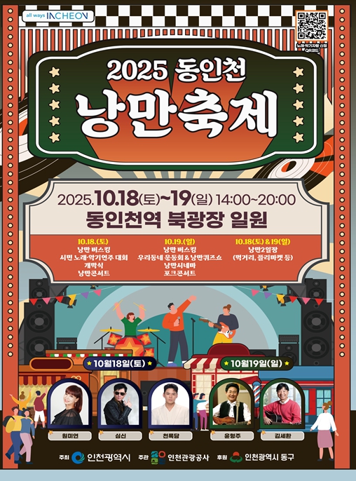 [뉴스앤톡] 인천광역시는 오는 10월 18일부터 19일까지 이틀간 동인천역 북광장에서 ‘2025년 동인천 낭만축제’를 개최한다고 밝혔다.