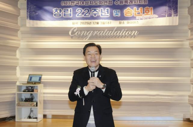 [뉴스앤톡] 이재준 수원시장이 3일 권선구에서 열린 한국여성지도자연합 수원시지회 송년 행사에 참석해 “여성의 인권을 넘어 지역사회에 다양한 활동과 지원을 해주신 여러분께 감사드린다”고 말했다.
