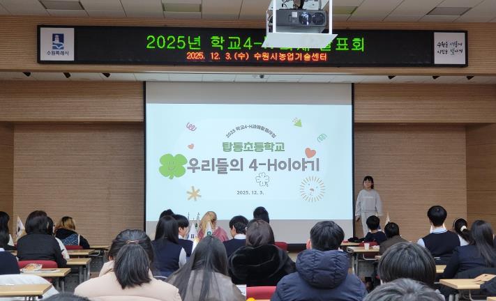 [뉴스앤톡] 수원특례시는 3일 농업기술센터 대강당에서 ‘학교4-H과제 발표회’를 열고, 1년 동안 각 학교가 추진한 4-H 과제 활동을 공유했다.
