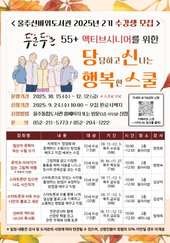 | ▲ 울주선바위도서관, ‘액티브시니어 당신행복스쿨’ 수강생 모집 |