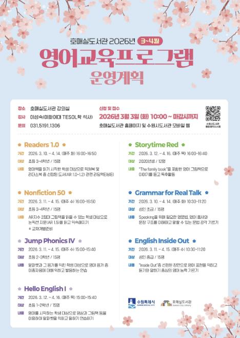| ▲ 수원시 호매실도서관 ‘3~4월 영어교육 프로그램’ 홍보물 |