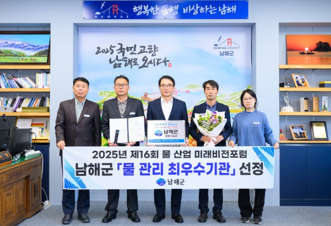 [뉴스앤톡] 남해군은 최근 부산 벡스코에서 열린 ‘2025년 제16회 물 산업 미래비전포럼’에서 ‘물 관리 최우수기관’으로 선정됐다.