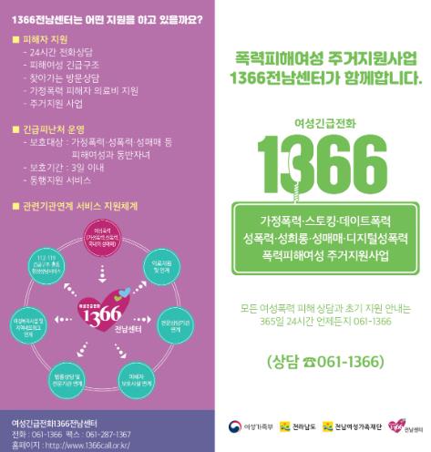 | ▲ 폭력피해여성 주거지원사업- 1366전남센터 주거지원 리플릿 |