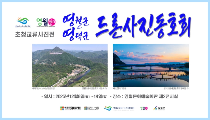 [뉴스앤톡] 영월미디어기자박물관이 오는 12월 8일부터 14일까지 영월문화예술회관 제2전시실에서 ‘영월군–영덕군 드론 사진 동호회 초청 교류사진전’을 개최한다.
