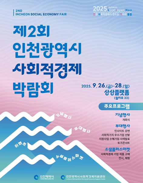 [뉴스앤톡] 인천광역시는 오는 9월 26일부터 28일까지 3일간, 인천 중구 상상플랫폼 웨이브홀에서 ‘제2회 인천광역시 사회적경제박람회’를 개최한다고 밝혔다.