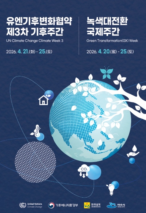[뉴스앤톡] 전라남도는 20~25일 여수세계박람회장 일원에서 ‘제3차 유엔기후변화협약 기후주간(UNFCCC Climate Week 3 Yeosu) 및 녹색대전환 국제주간(GX-Week)’을 개최, 글로벌 기후외교 무대를 밟는다고 밝혔다.