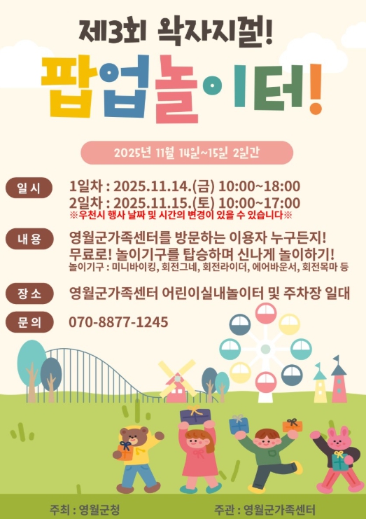 [뉴스앤톡] 영월군 가족센터는 오는 11월 14, 15일 ‘제3회 왁자지껄 팝업놀이터’를 운영한다.