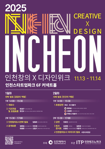 [뉴스앤톡] 인천광역시는 오는 11월 13일부터 14일까지 이틀간 인천스타트업파크 커넥트홀에서 '2025 인천창의X디자인위크'를 개최한다고 밝혔다.