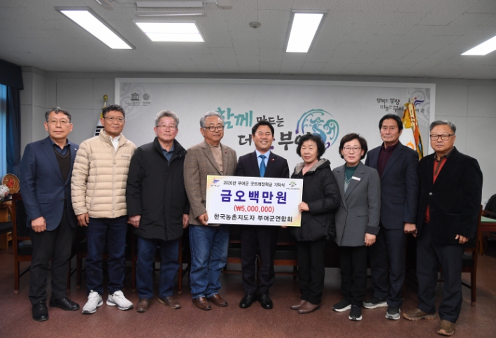[뉴스앤톡] 부여군농촌지도자회(회장 임병우)는 부여군청을 방문하여 인재 육성을 위한 장학금 5백만 원을 (재)부여군굿뜨래장학회에 기탁했다고 13일 밝혔다.