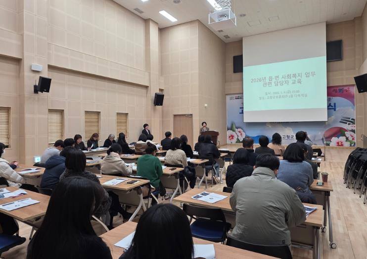 [뉴스앤톡] 고창군이 지난 9일 고창군보훈회관 1층 다목적실에서 읍·면 사회복지 업무 담당자 30여 명을 대상으로 2026년 사회복지사업 추진방향 교육과 공유의 시간을 가졌다.
