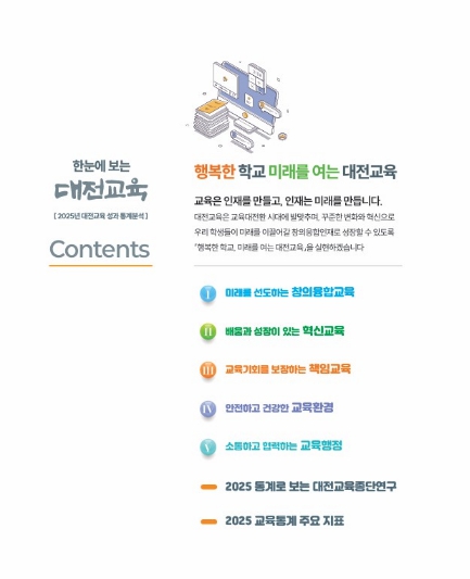 [뉴스앤톡] 대전교육과학연구원 대전교육정책연구소는 2025년 대전교육 주요 정책의 성과를 종합적으로 분석한 ‘한눈에 보는 대전교육’을 발간했다고 밝혔다.