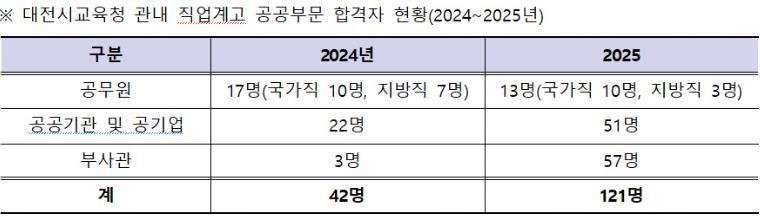 | ▲ 대전시교육청 관내 직업계고 공공부문 합격자 현황표 |
