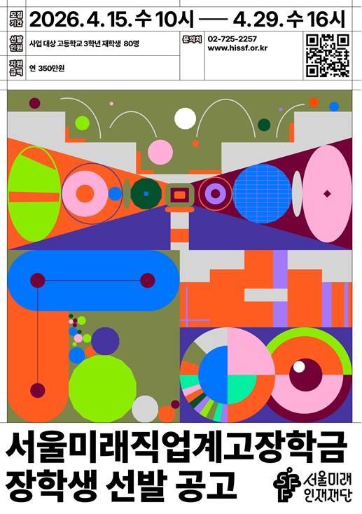 특히 재단은 올해는 첨단산업 분야 실무 기술 인재가 될 고등학생의 직무·취업 역량 강화를 지원하기 위해 '서울미래직업계고장학금'을 신설했다. 서울시-교육청 협력체계 구축 직업계고등학교 3학년 재학생 80명을 선발해 1인당 연 350만 원(2회 분할 지급)을 지원한다.