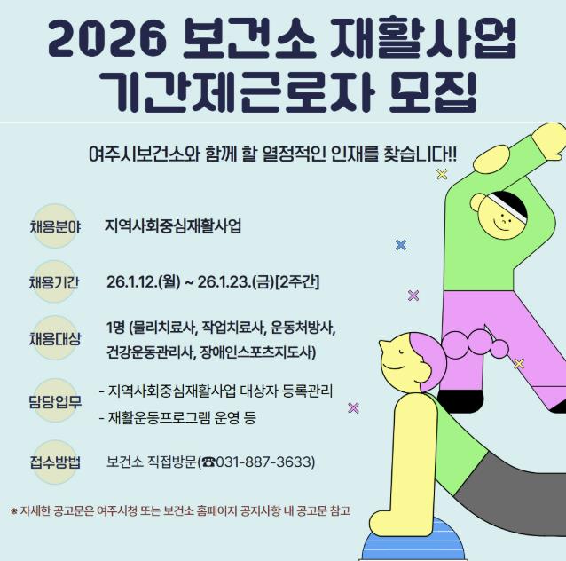| ▲ 여주시보건소, 재활사업 기간제근로자 채용 |