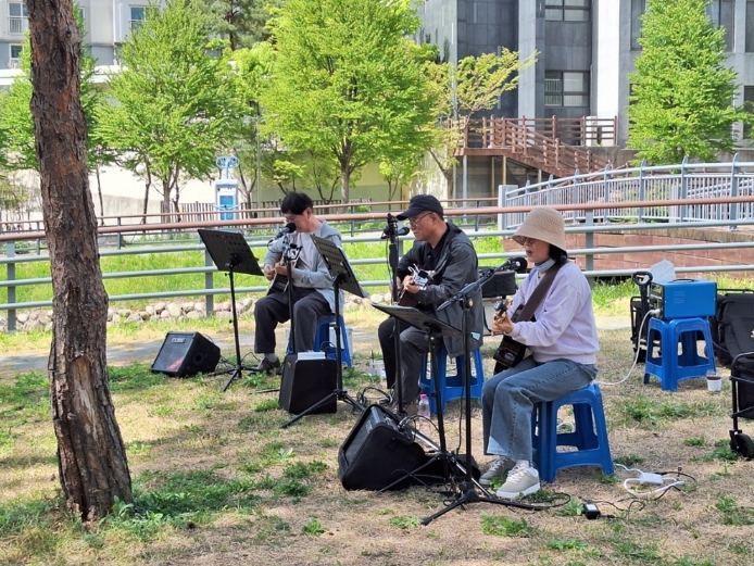 이번 공연은 만연한 봄 향기와 함께 산책을 즐기는 주민들에게 음악을 통한 휴식과 즐거움을 선사하기 위해 마련했다. 특히 송산3동 주민자치 프로그램 수강생들의 자발적인 재능기부로 추진돼 의미를 더했다.